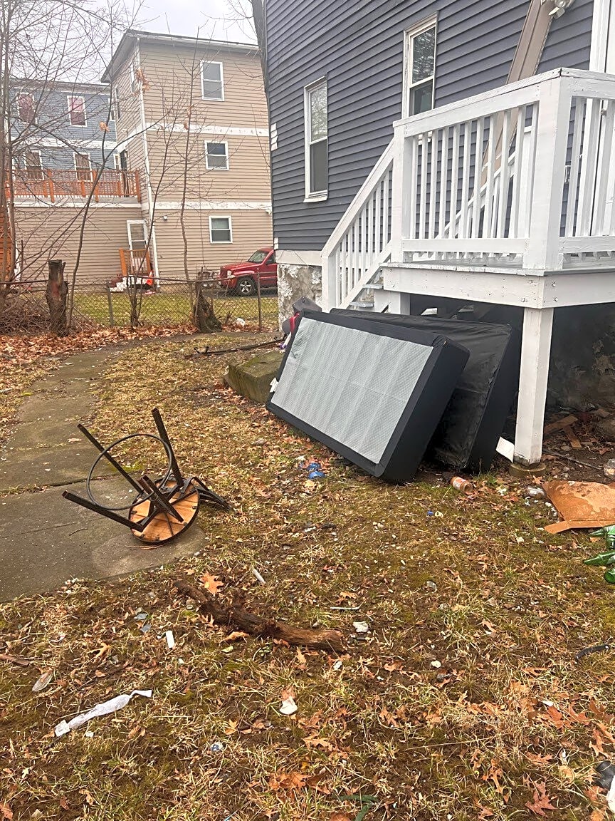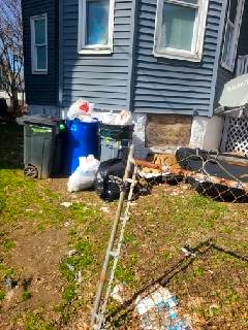 1 City Hall Plz, Boston, Ma, 0210843 Theodore St. in Dorchester. trash in the yard rodents crawling around and mattress in the front yard.