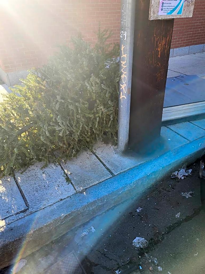701 Massachusetts Ave, Unit 1, Roxbury, Ma, 02118Rubbish is placed out well in advance of pickup | Details: ["2 Abandoned mattresses and 1 Christmas tree."] Exact location: [Rear]
