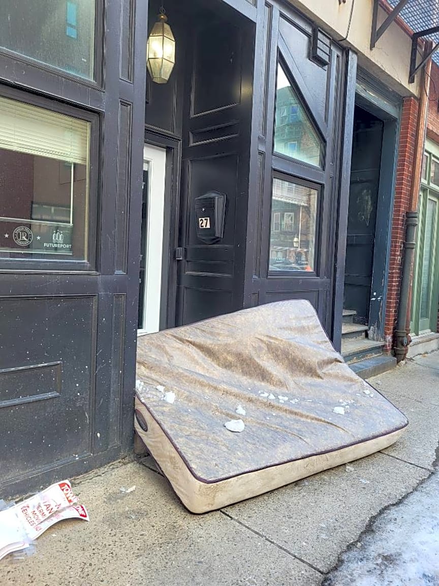 27 Thacher St, Boston, Ma, 02113Someone dumped a huge mattress outside building door so tou can’t walk outside the building because it’s blocking the entrance. Safety issue! Please remove.
