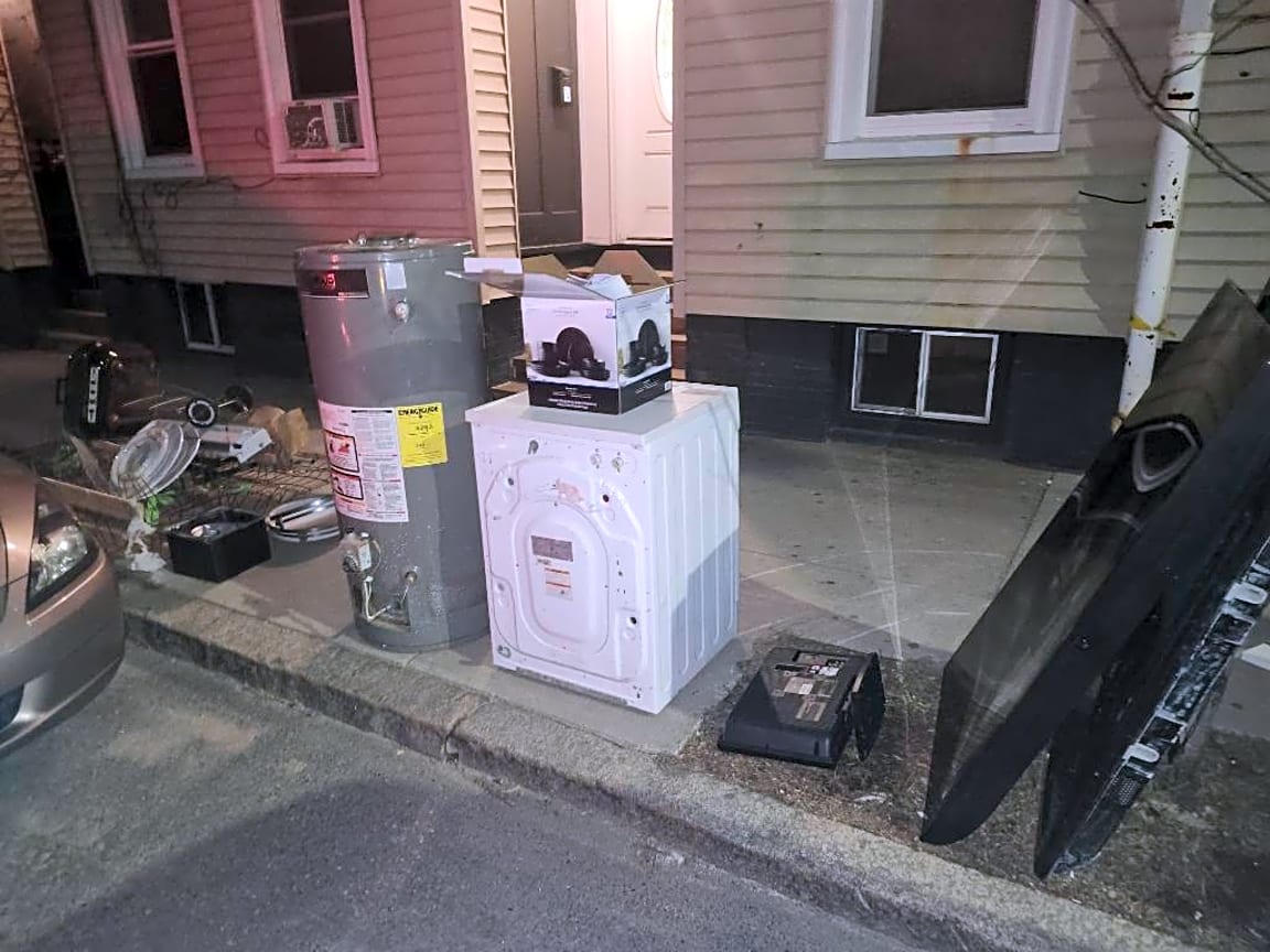 16 Princeton St, East Boston, Ma, 02128constituent states someone illegally dumped TVs and mattresses, as well as other trash infront of their property here and they are looking to get it removed | Witnessed incident: [No]