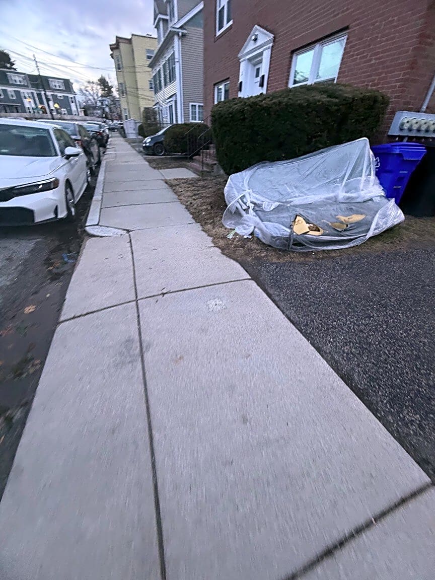Intersection Of Linwood St And Highland Ave, Roxbury, MaMattress blocking sidewalk