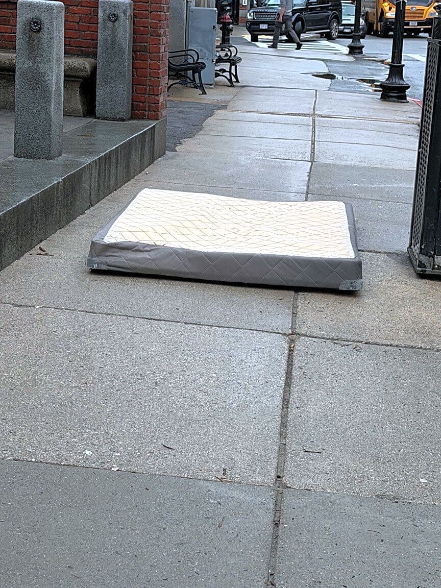 57 Stuart St, Boston, Ma, 02116Trash, used mattress on the sidewalk