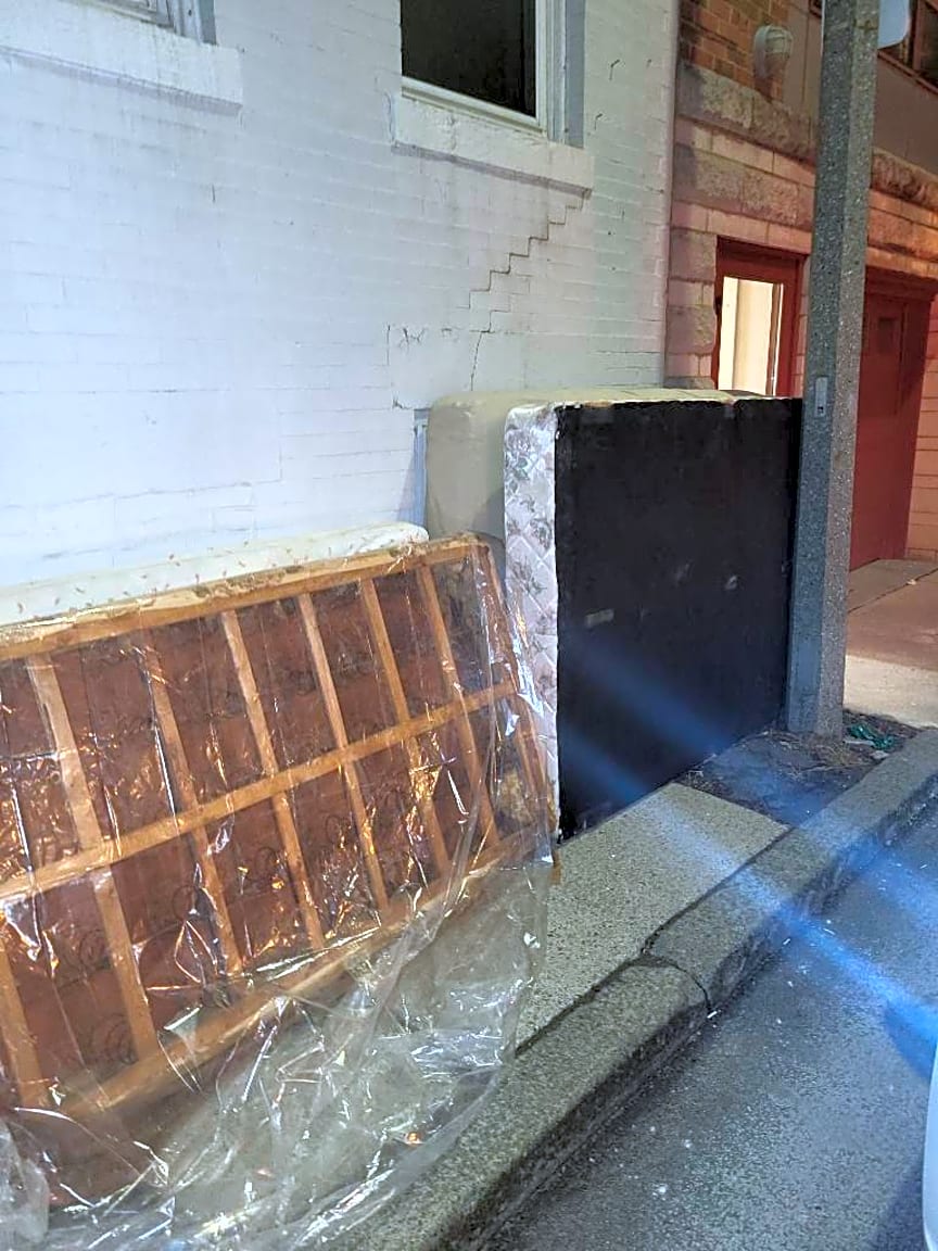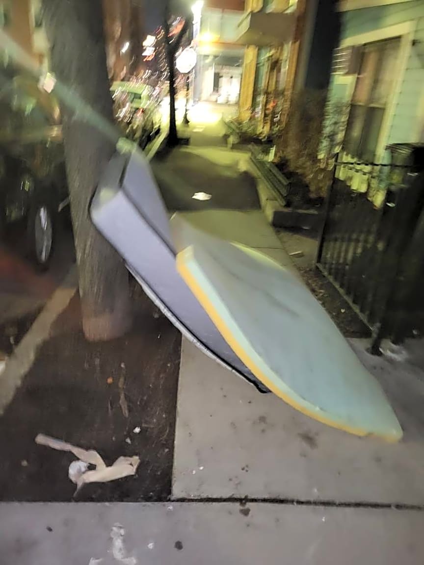 75 81 W Main St, Dorchester, Ma, 02126Therapeutic mattress on a sidewalk