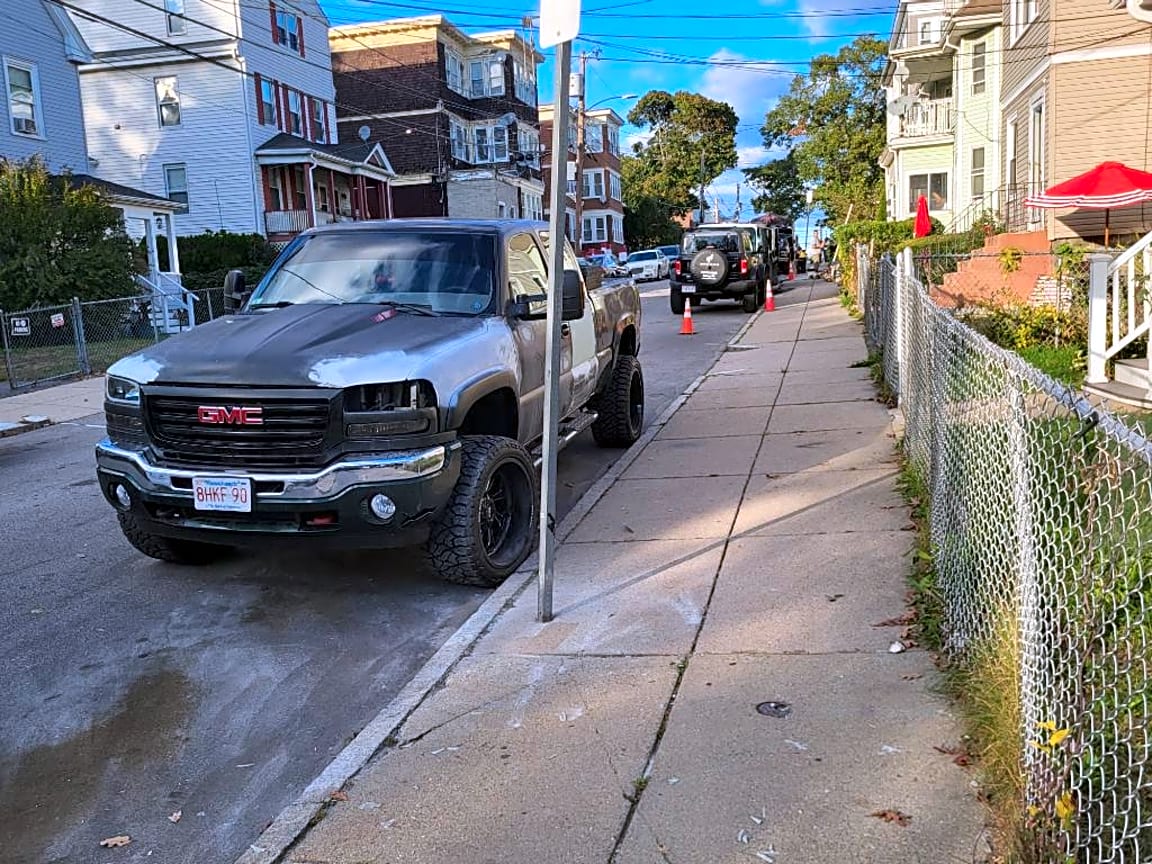 82 Astoria St, 1, Mattapan, Ma, 02126Constituent states neighbor repair vehicles on the sidewalk and has 5 vehicles at the side of the house | Exact location: [front]