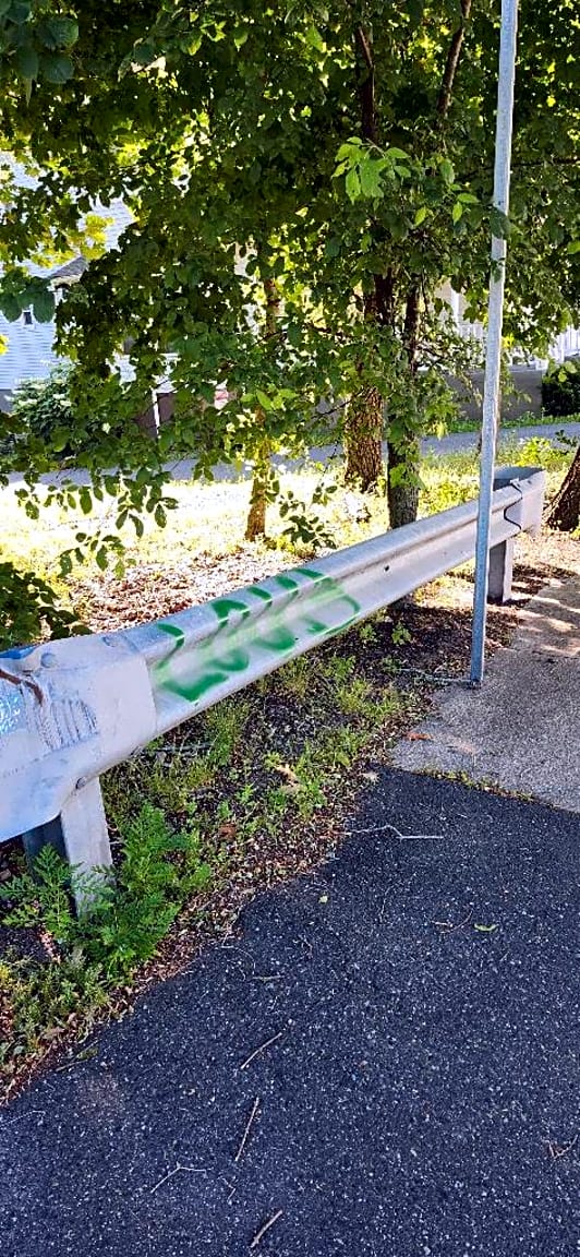 Intersection Of Garfield Ave And Truman Pkwy, Hyde Park, MaOnthe guardrail at this intersection, there is very offensive graffiti written on it. Can this please be removed ASAP! | **This case is being bounced between PWD/Graffiti and PWD/Bridges...pls expedite Graffiti location: [Other] Graffiti surface: [Metal]