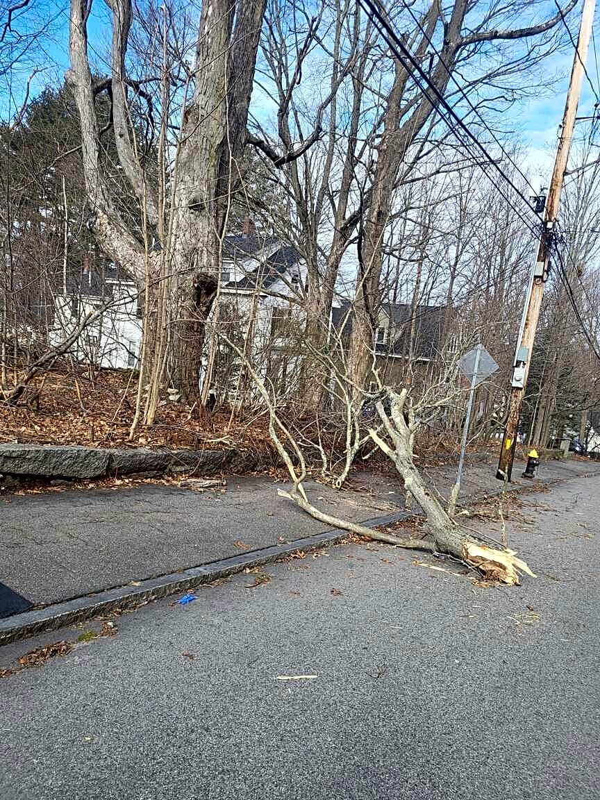 62 Gordon St, Boston, MA 02134There's a large broken off branch hanging in the electricity line that's only waiting to crash down on a car or person.