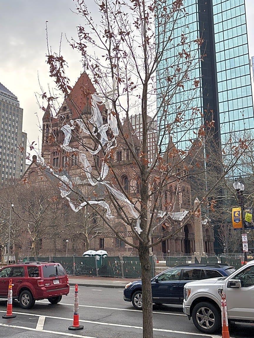 573-575 Boylston St, Boston, MA 02116There is still plastic caught up in the trees in Copley Square. These are in front of 575 Boylston St