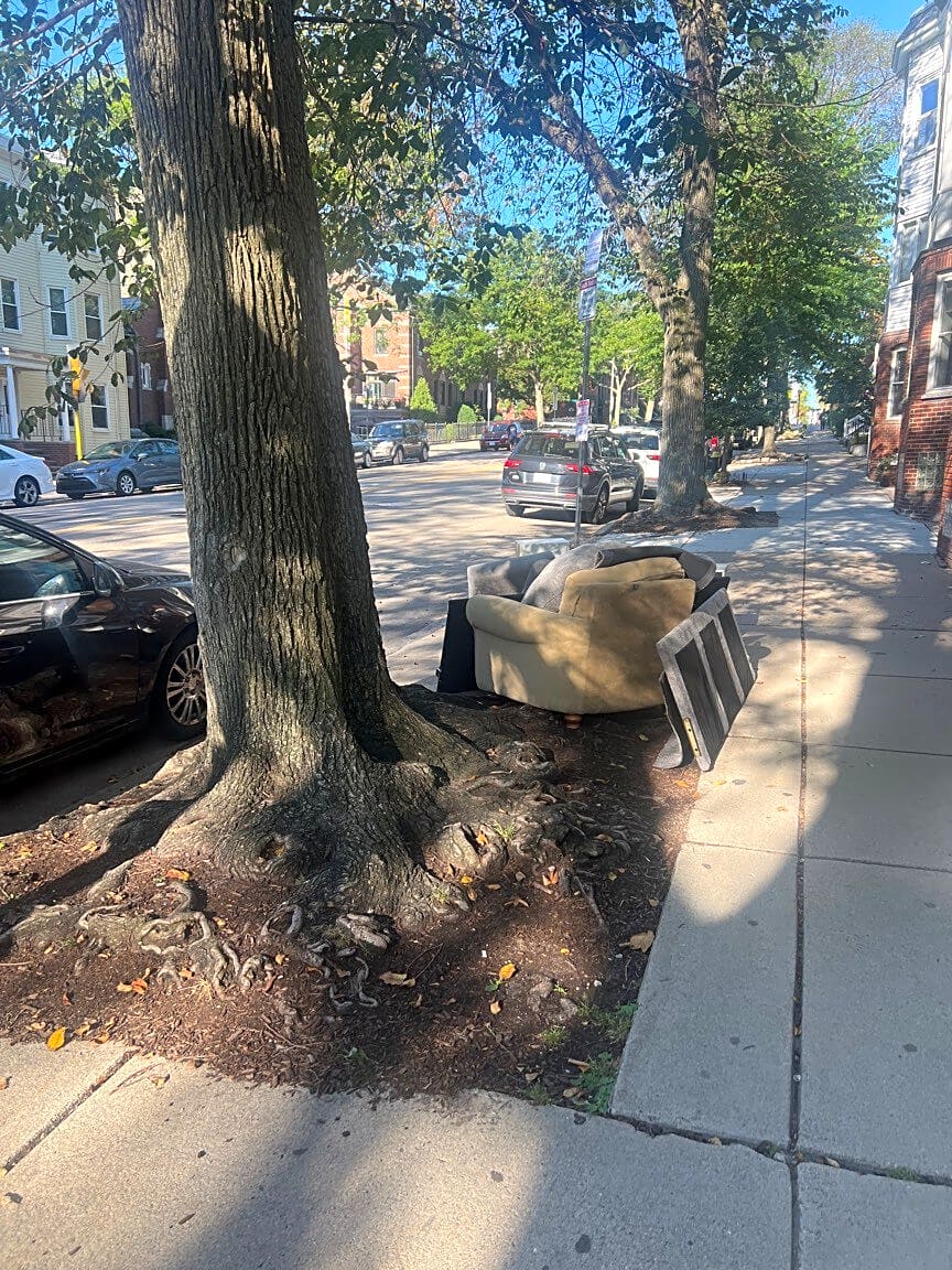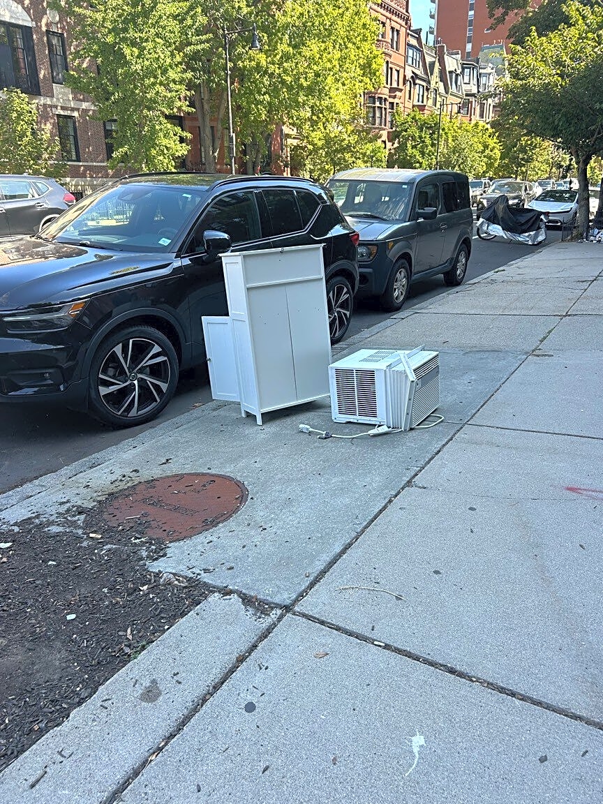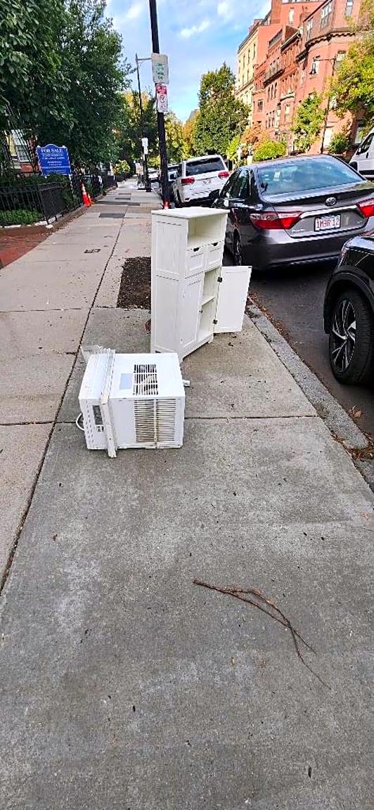 387 Beacon St, Boston, Ma, 02116There was furniture from a move left on the sidewalk in front of 387 Beacon St, a cabinet and air conditioner.