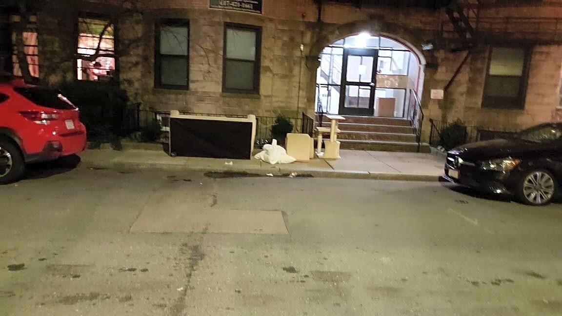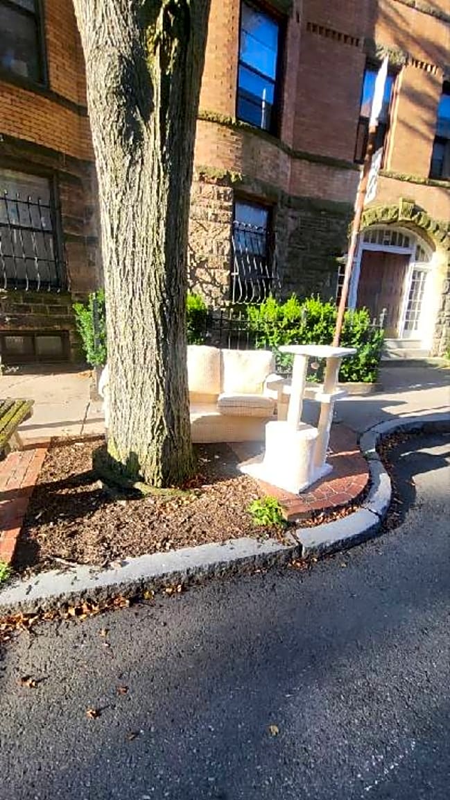 8 Hillside St, Mission Hill, Ma, 02120Furniture being placed on street before trash pick up day - one of the items is a sofa placed next to a hydrant