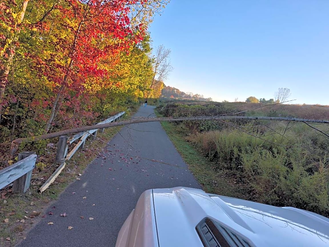 300 Gardner St, West Roxbury, Ma, 02132Tree down at Deer Park on the walkway leaning on the wooden fence