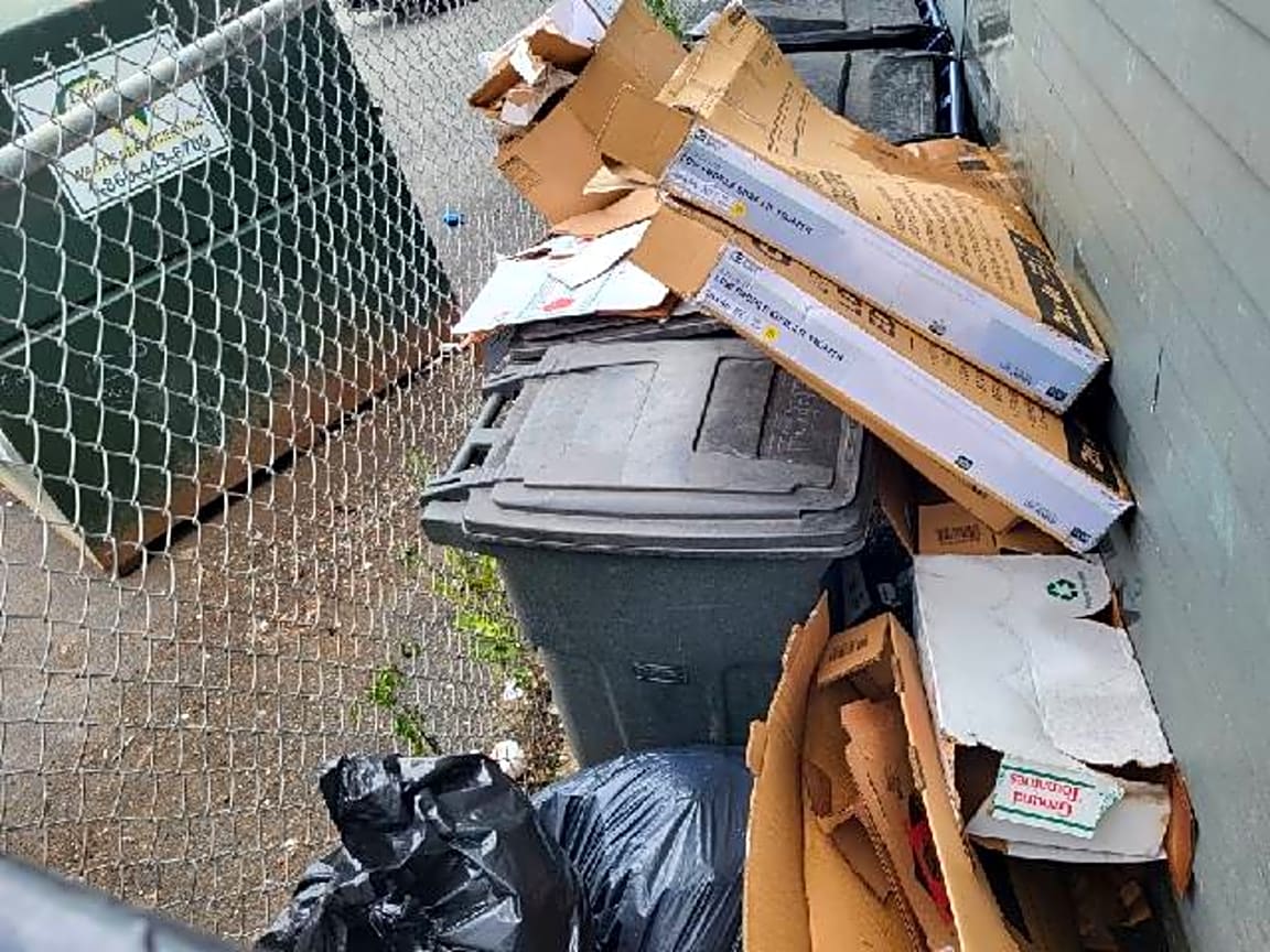 582 Dorchester Ave, South Boston, Ma, 02127All boxes in a bag of trash on top of the barrel right next to the open door the back door of red line pizza address is 582 Dottie Avenue they constantly do this every single week there at corrugated boxes and trash always on top of the barrel.