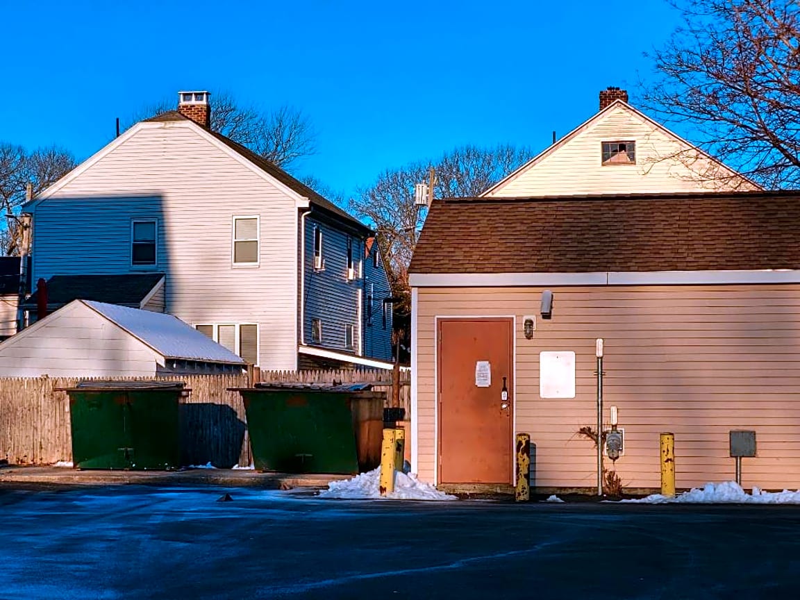 295 Foster St, Brighton, Ma, 02135Loose trash in between trash barrels by side of house