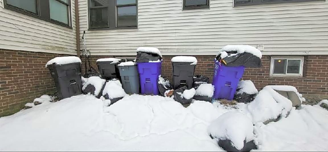 307 Foster St, Brighton, Ma, 02135Improperly stored trash along right side of house by trash barrels