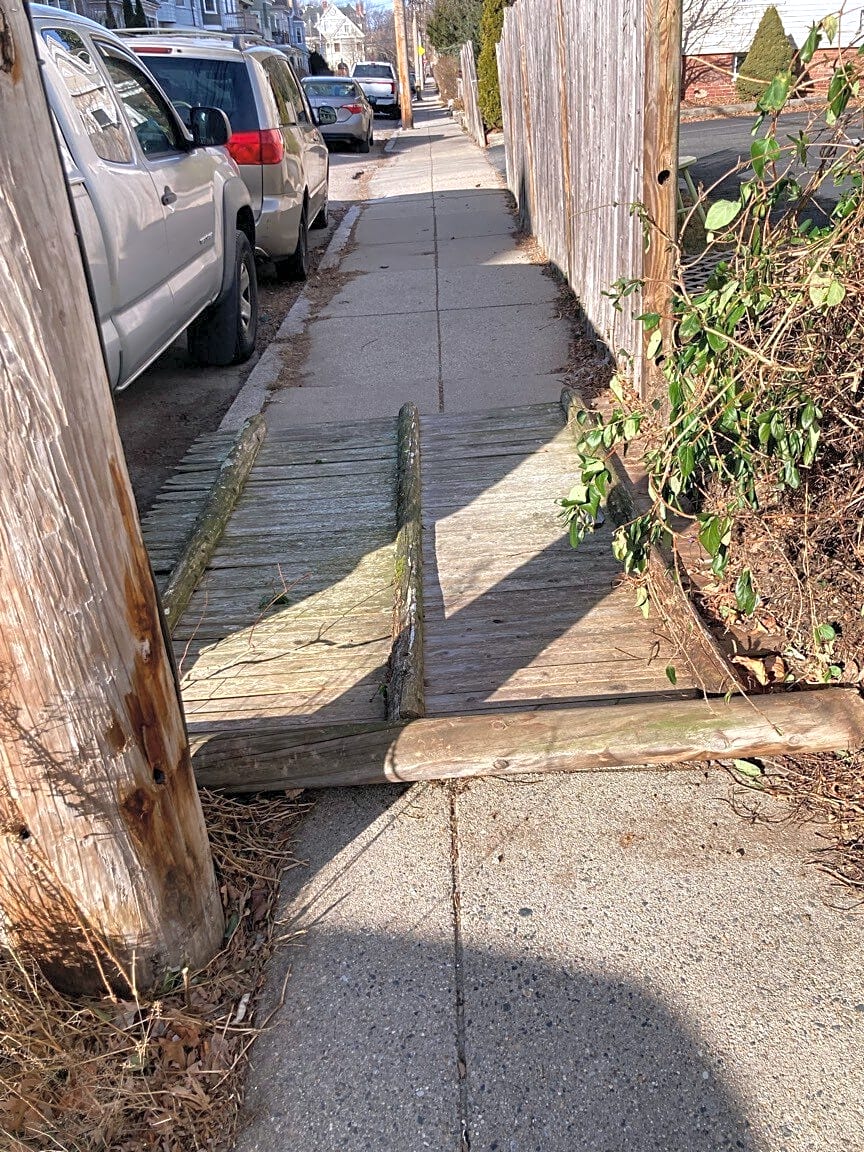 7 Sylvia St, Jamaica Plain, Ma, 02130Everyday there is a new car blocking our driveway making it challenging to get in and out. Please help fix these broken sidewalks and create a gradual ramp down while also making it clear where the driveway starts. The current setup has the sidewalk effectively cutting into the driveway. This is a frustrating daily occurrence and also the sidewalk is not safe. We’ve been asking to fix this for over two years. Please help. Thank you