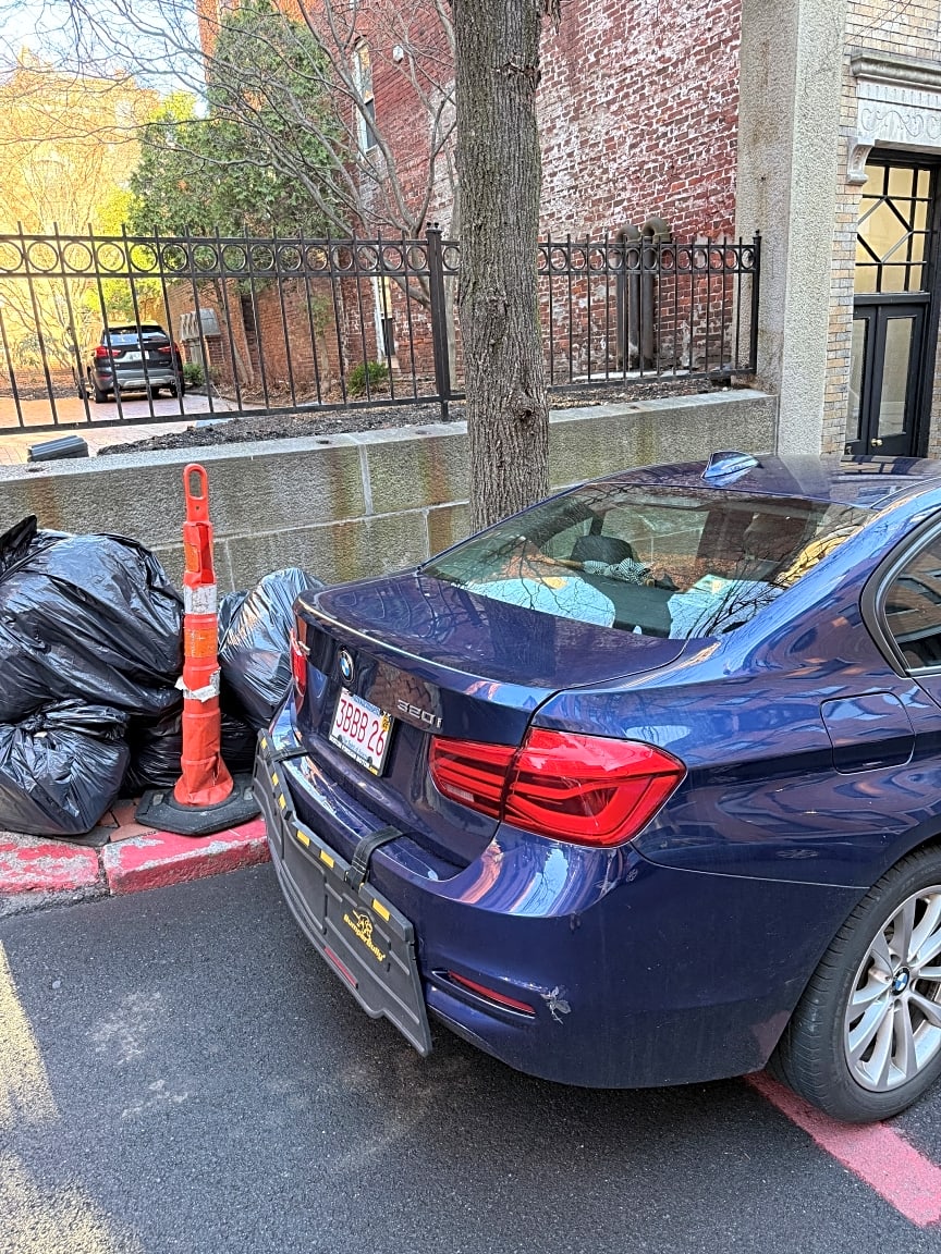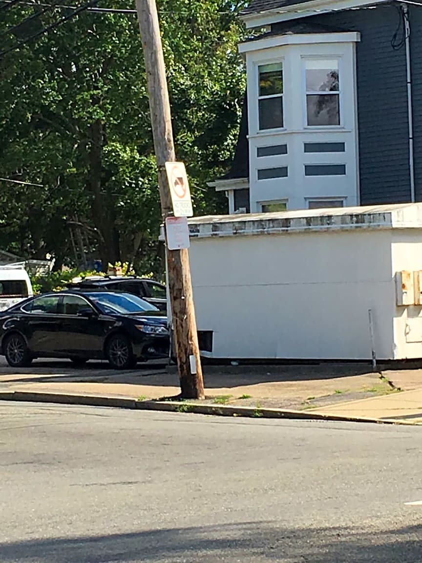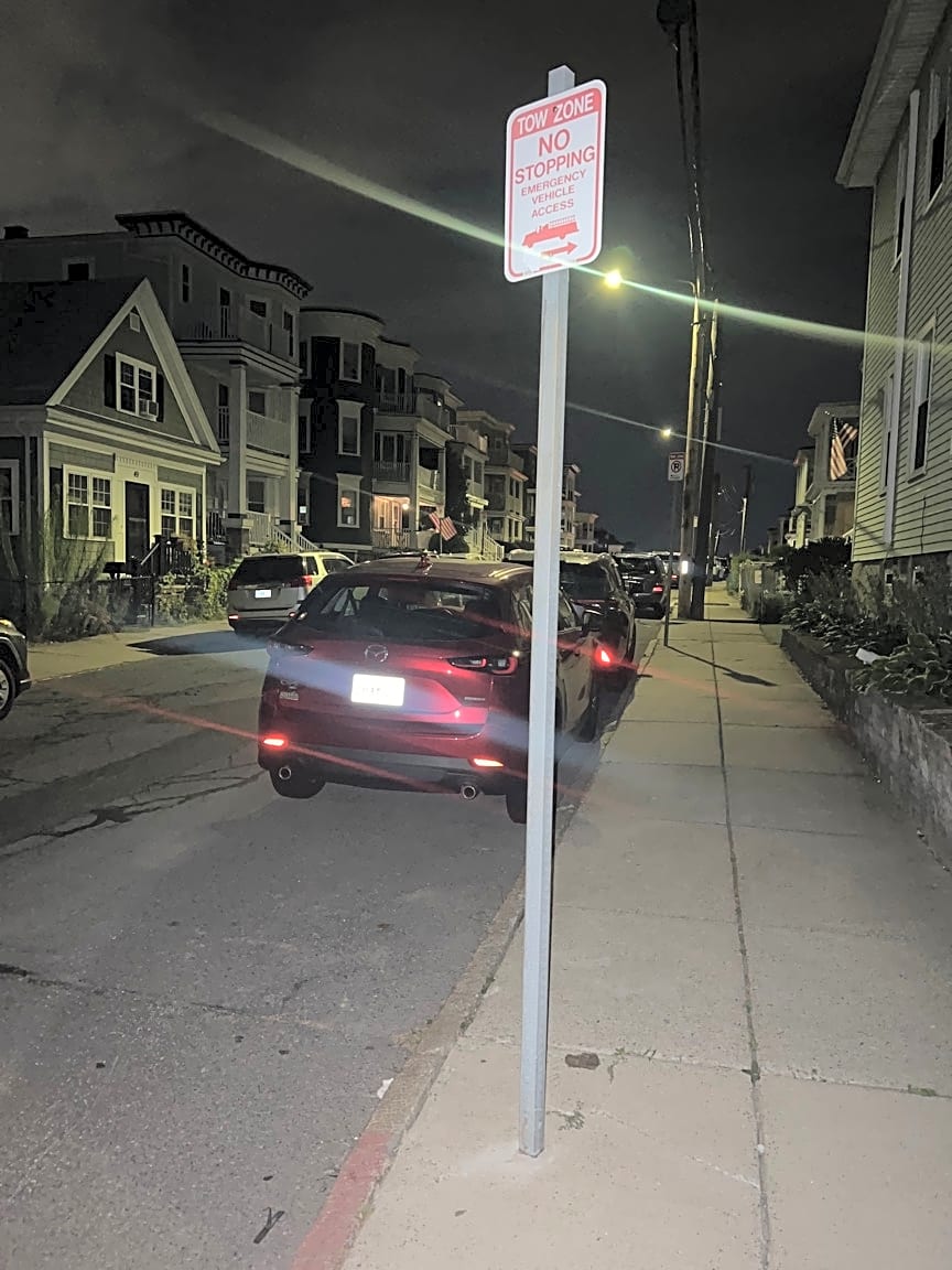 124 Train St, Dorchester, Ma, 02122Move back emergency vehicle sign. There is a red line for where it is and the sign is 5 feet in front of it.