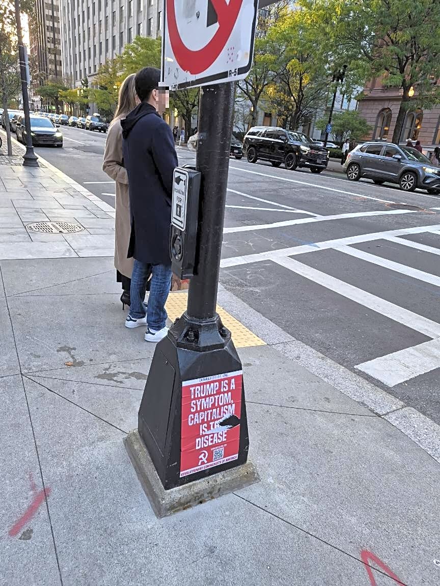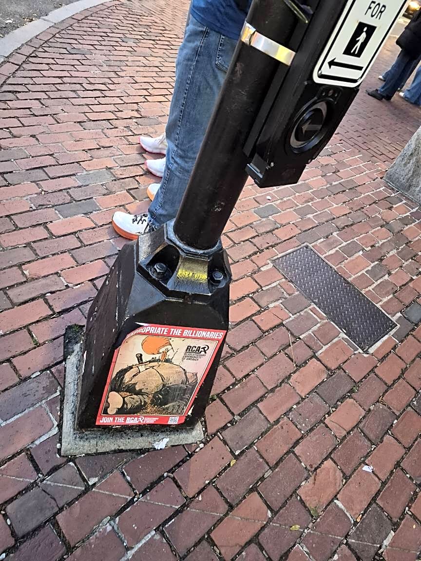 Take this down now. As ridiculous to see on the streets of Boston as a swastika. Hate speech is not protected speech. My russian wife grew up in CCCP and this made her sick bc of what this represents. Remove this now!