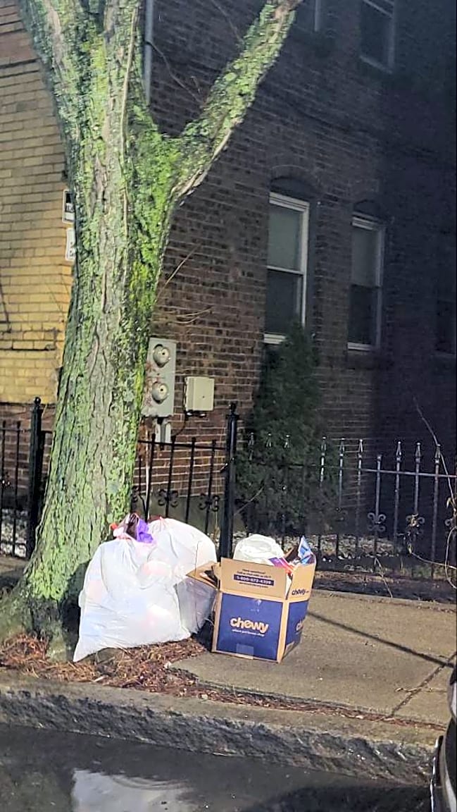 24 Pompeii St, Roxbury, Ma, 02119Trash out illegally on Pompeii Street. Residence are now placing the trash by trees instead of their house to avoid violations.