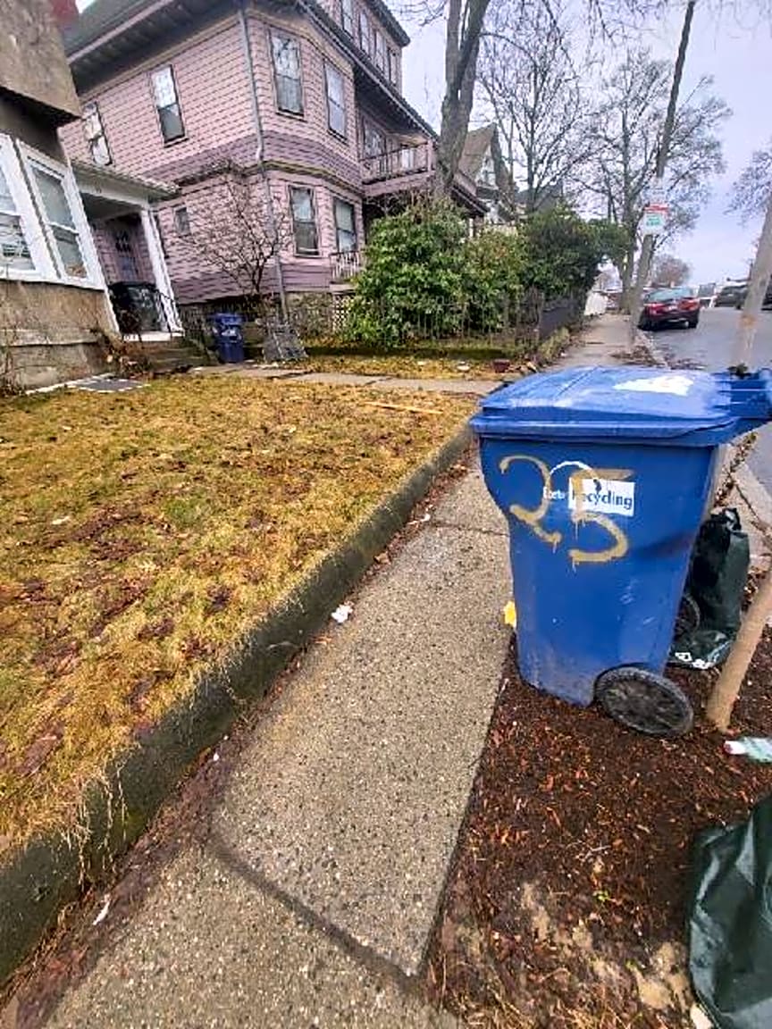 35 Kenwood St, Dorchester, Ma, 02124Trash barrel blocking sidewalk