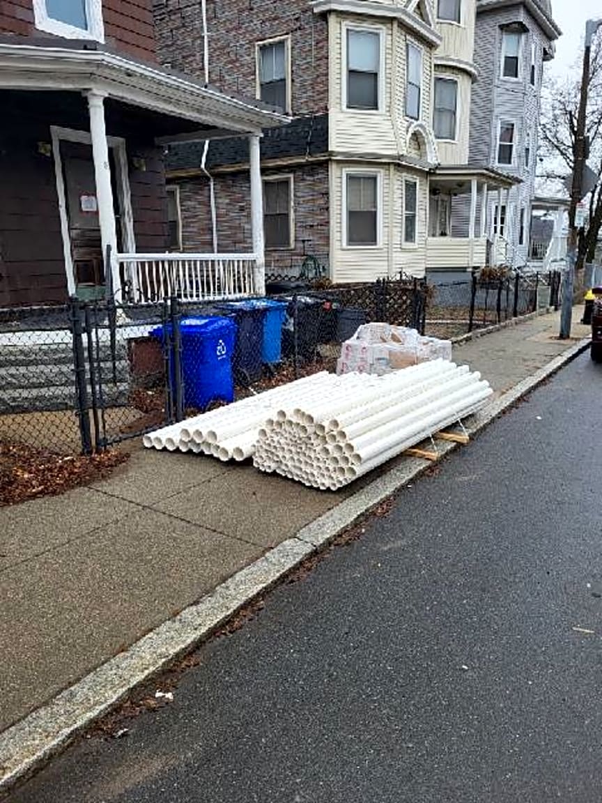 59 Pontiac St, Mission Hill, Ma, 02120Construction materials blocking sidewalk