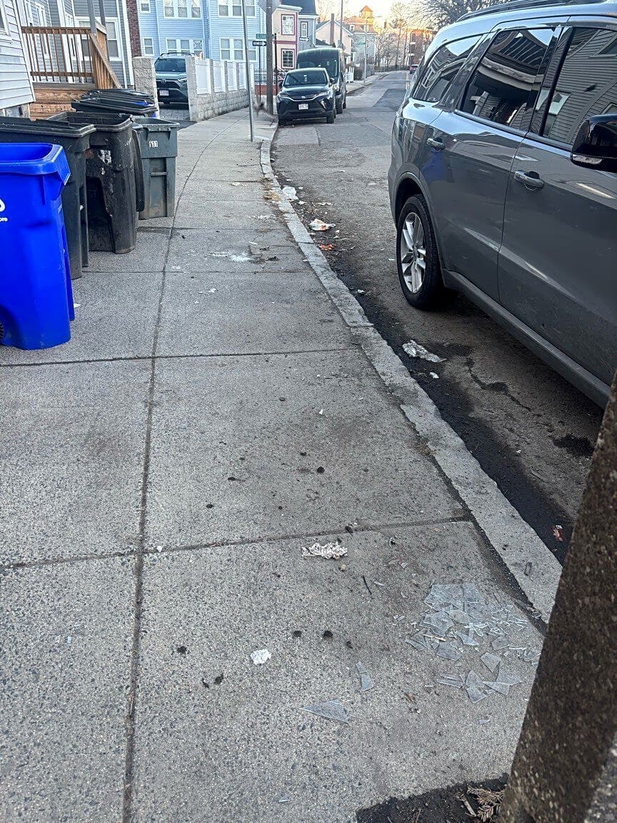 531 Adams St, Dorchester, Ma, 02124Broken glass and trash on sidewalk and gutter please clean thanks