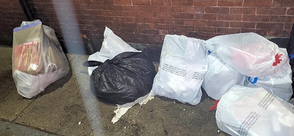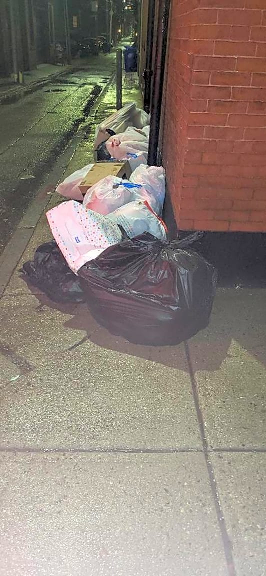 Intersection Of Public Alley No. 416 And Public Alley No. 417 And Fairfield St, Boston, MaTrash has been on the sidewalk all week. This was taken Wednesday morning
