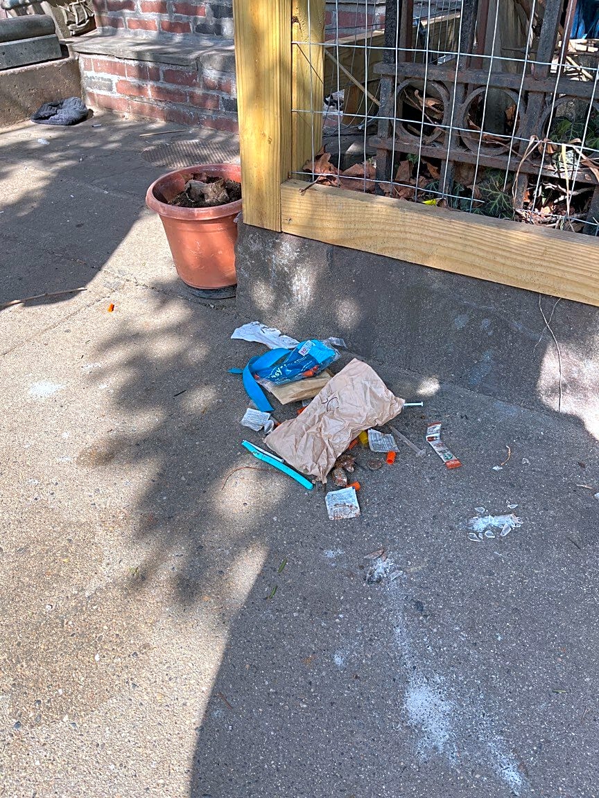 CLOSED #101006566093Resolved. *Trash out early. Trash can be placed outside for pick up after 6am the day of pick up or after 5pm the evening before pick up.Evidence found belonging to TMibile store 1667 blue hill ave.