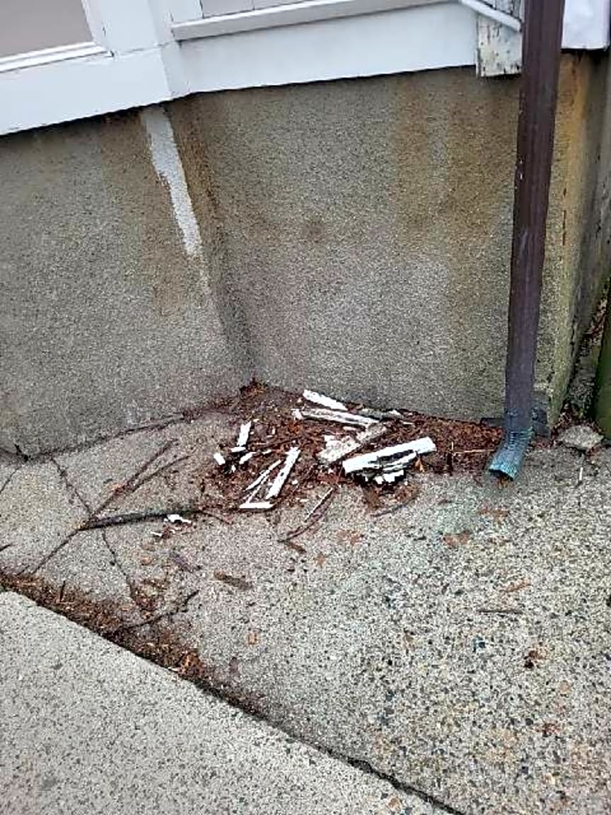 87 I St, South Boston, Ma, 02127**The debris is part the the owners house Chipping off ,and on there property, on private property ::spot:: Nails in wood left out on sidewalk for weeks