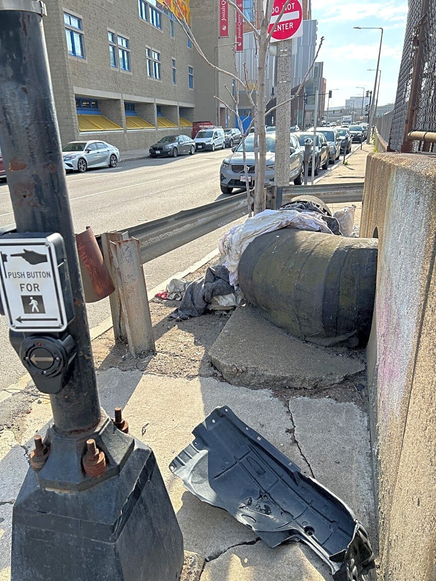 Intersection Of Shawmut Ave And Massachusetts Tpke W, Boston, MaTrash across from school.