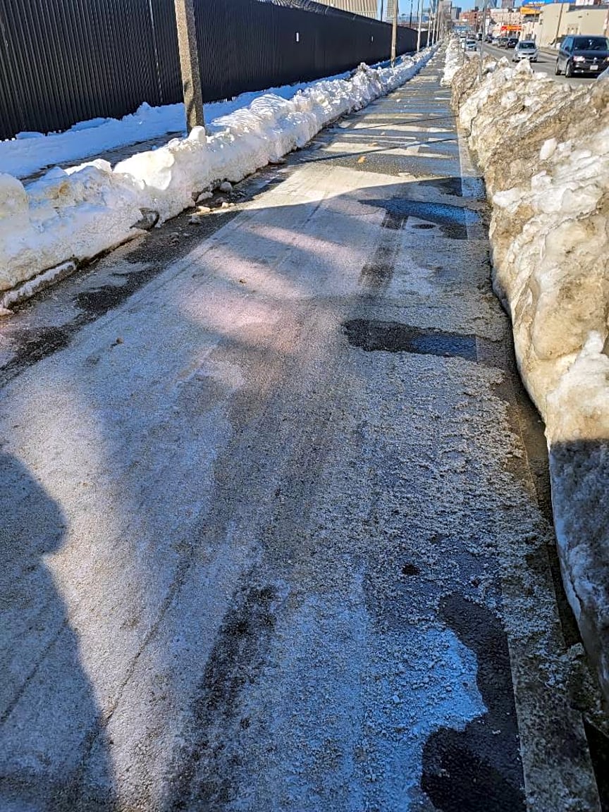 1190 Massachusetts Ave, Dorchester, Ma, 02125Bike lane full of slush and black ice