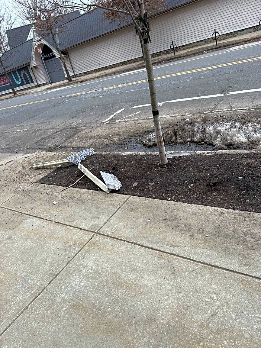 516 522 Western Ave, Brighton, Ma, 02135Broken bike lane bollards and glass on street and sidewalk