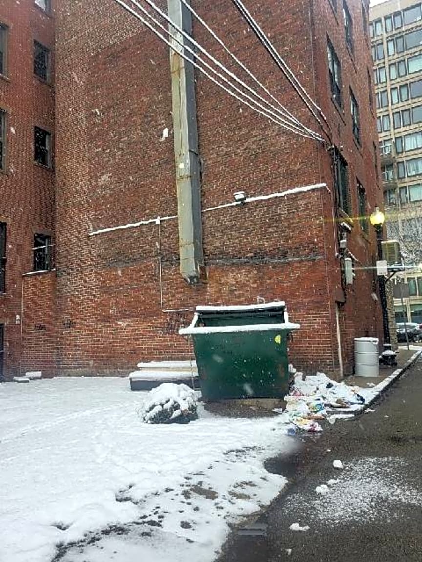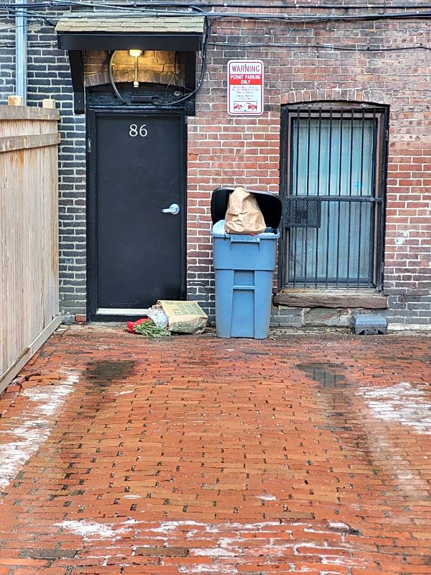 701 Massachusetts Ave, Unit 1, Roxbury, Ma, 02118Rubbish is placed out well in advance of pickup | Details: ["2 Abandoned mattresses and 1 Christmas tree."] Exact location: [Rear]