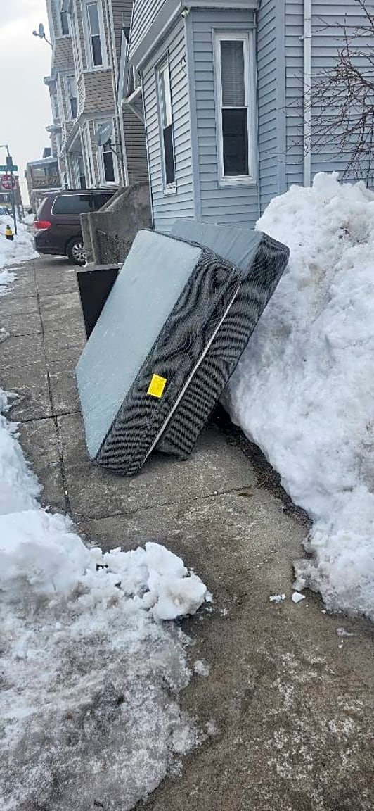15 Goldsmith St, Jamaica Plain, Ma, 02130Mattress blocking sidewalk, trash day isn’t for 4 more days.