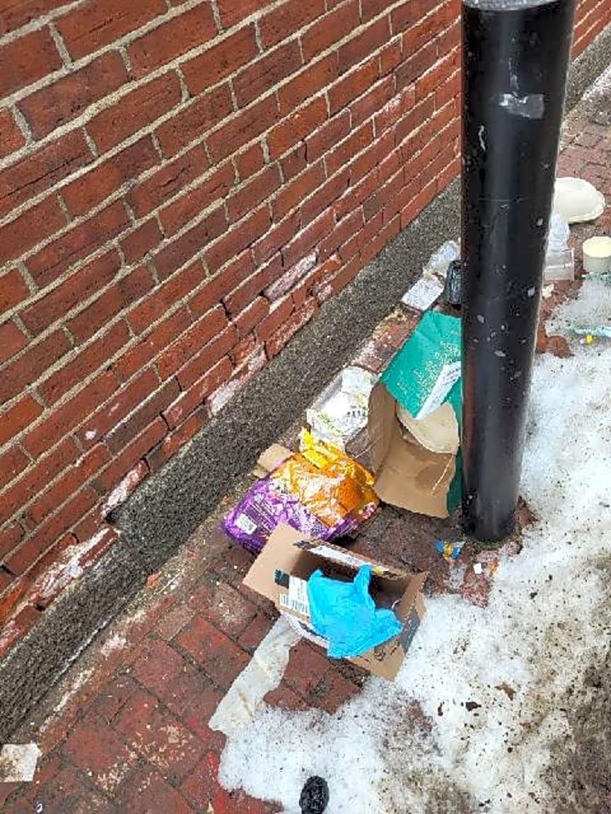45 53 Hereford St, Boston, Ma, 02115trash on the sidewalk beside the building in the alley, disgustuing | Witnessed incident: [No] Case related to commercial waste: [Unknown]