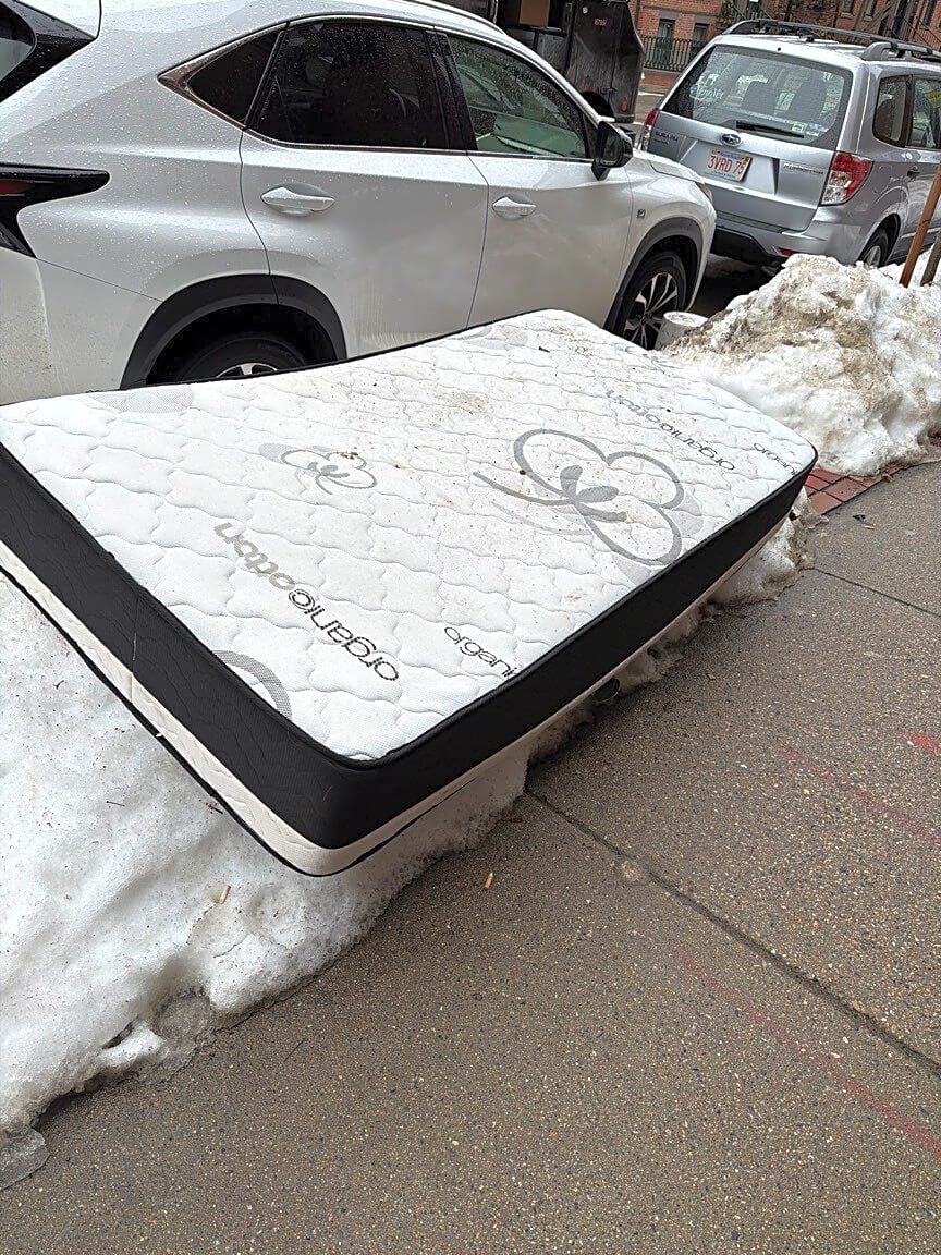 39 Warren Ave, 39 G, Boston, Ma, 02116Please see Case #101006506382 Its a mattress on a pile of snow. | Type of debris: [Other] Cars parked on the street: [No]