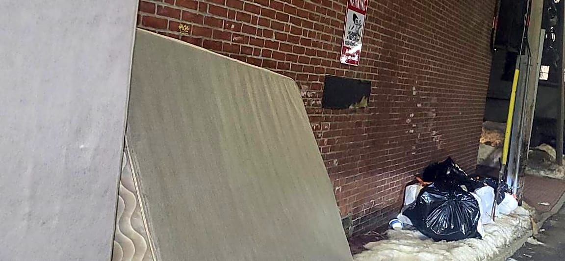CLOSED #101006510954Resolved. Trash is allowed to be placed out after 5pm the night before trash pickup. Mattresses put in for collections. No evidence found.