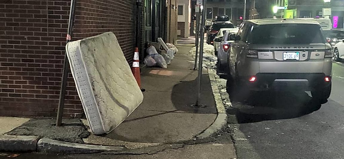 16 Leamington Rd, Brighton, Ma, 021358 mattresses out on the road, not on trash day