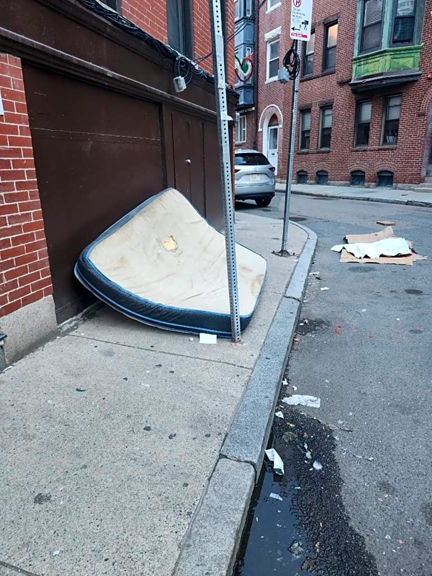 100 Prince St, Boston, Ma, 02113Trash all over north end- mattresses - Please send trucks to remove- busy neighborhood- small sidewalks- tourists and construction- we need trucks to remove these items please. Near Secrets nail salon someone moved out and dumped mattress blocking sidewalk for example- Salem street more mattresses