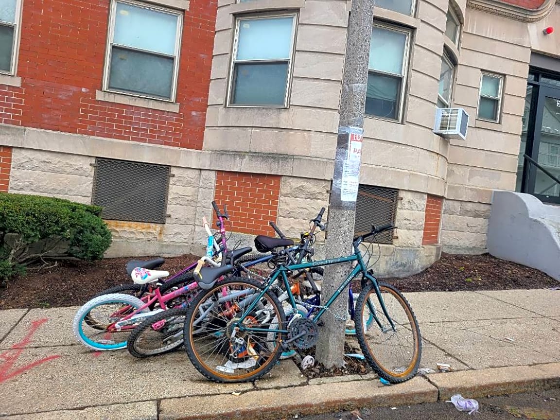 5 Intervale St, Dorchester, Ma, 02121Property conditions interfere with sidewalk passage | Details: [Residents that lives at 5 has multiple bikes tied up to light pole blocking part of the sidewalk.]