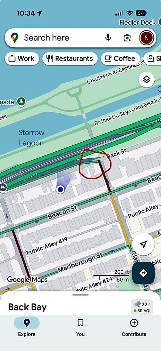 190 R Beacon St, Boston, Ma, 02116That intersection coming out of Storrow is a real safety hazard - the stop sign was missing for 6 months because of an accident, it just got replaced and this morning someone rammed it again. There are scattered broken car parts all over that corner. I walk out through the alley and cars come full speed and rarely stop.