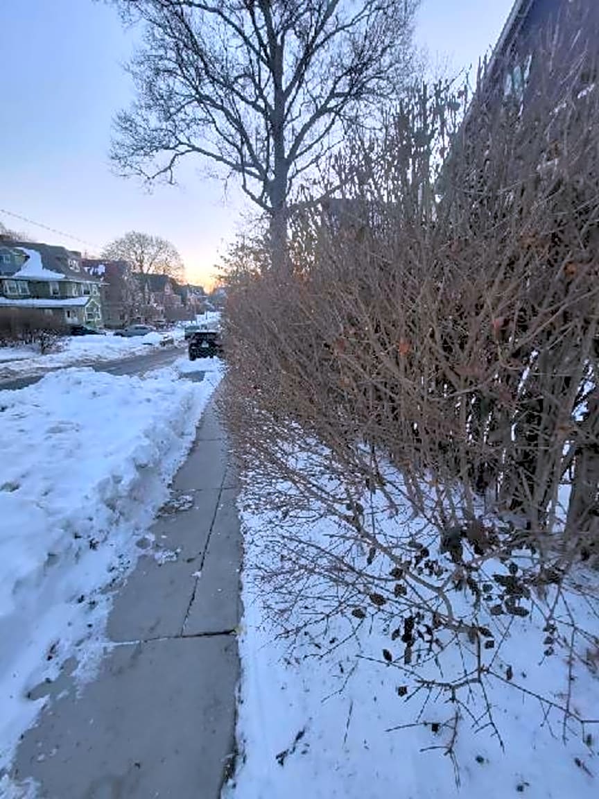 4 Hooper St, Dorchester, Ma, 02124These bushes are blocking half the sidewalk, it’s hard to get by the utility pole without getting scratched by all the branches.