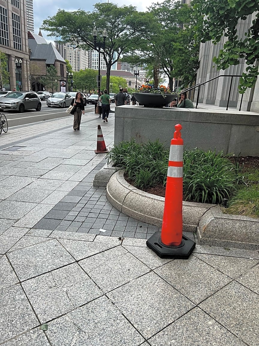 640 Boylston St, Boston, Ma, 021163 Random cones on Boylston for a month in front of BPL.