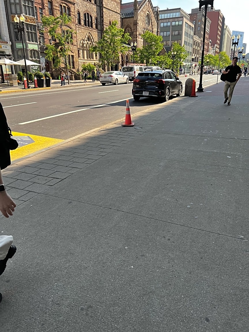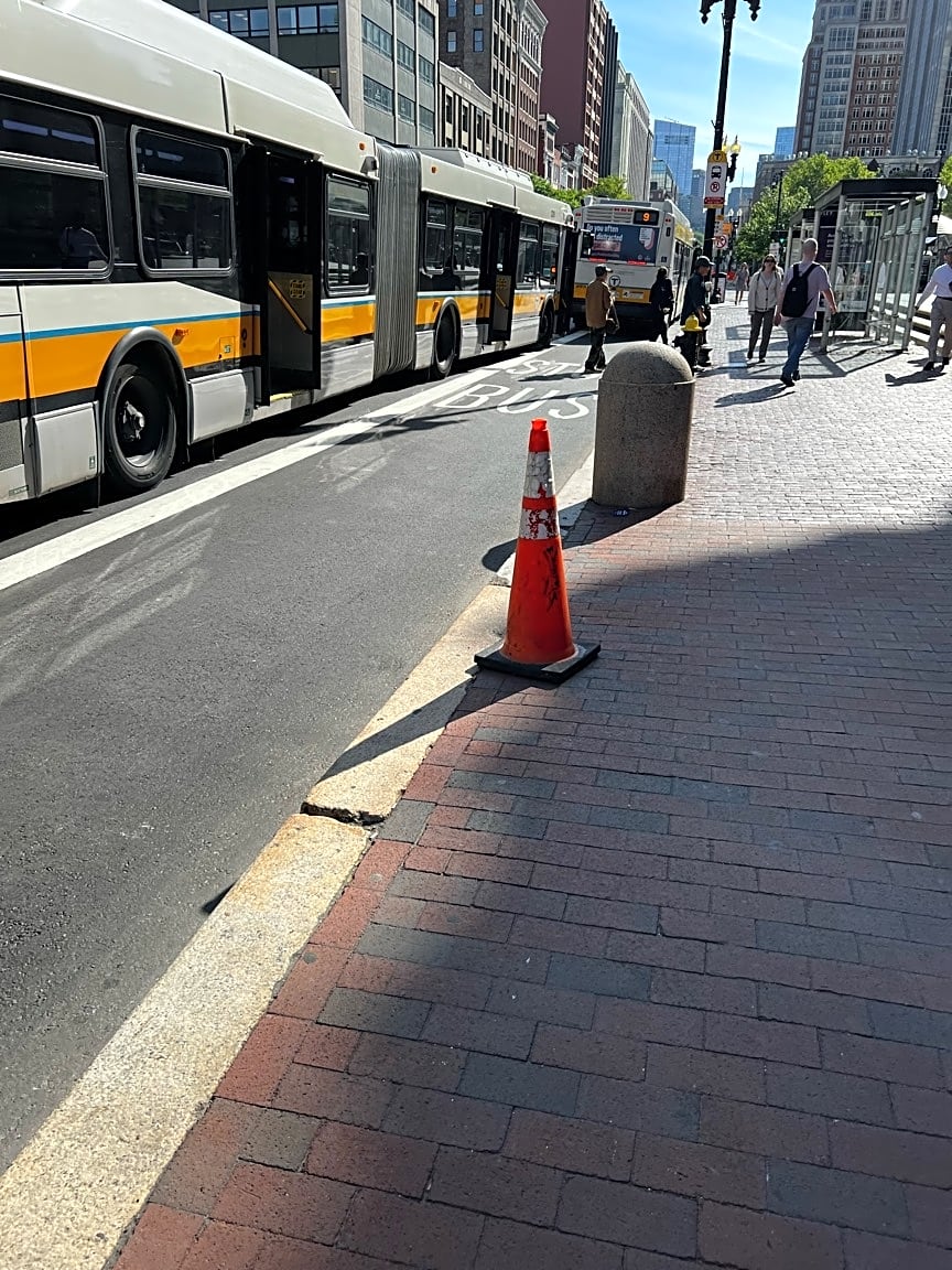 Intersection Of Trinity Pl And Stuart St, Boston, Ma3 random cones middle of Trinity Place, please remove