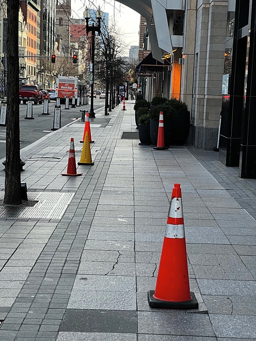 497 Boylston St, Boston, Ma, 02116Random cones please remove for pedestrian safety