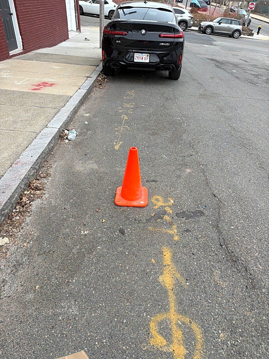6 Dabney St, Roxbury, Ma, 02119corner of dabney st and regent st roxbury, illegal space savers still on the street on dabney. take up all the street parking available. car in front also uses a space saver