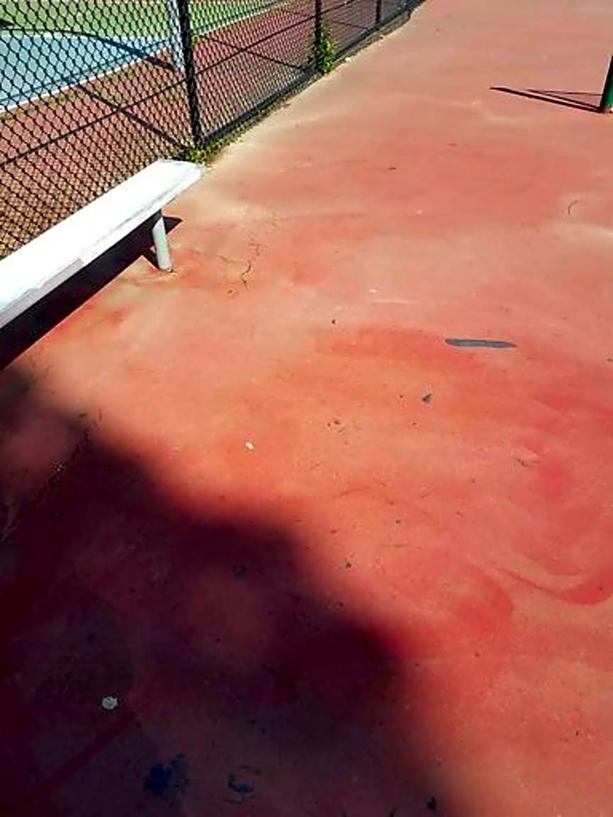 Tennis and basketball courts damaged with cracked surfaces throughout each. | SR Type: [Trades General]