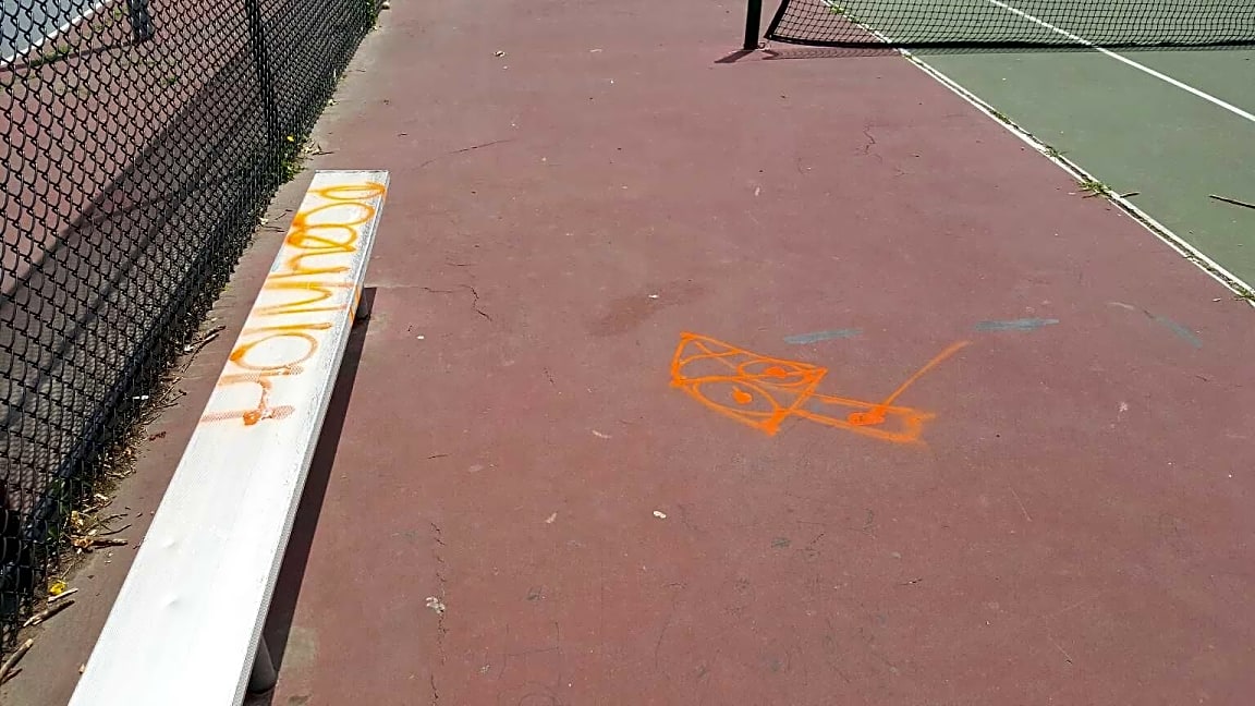 CLOSED #101002145960Case Resolved. By the Property & Construction Management Department, of The City of Boston. The complaint has been handled by our experienced surface restoration technicians. We treated and safely removed the graffiti and/or covered the painted surface to be aesthetically pleasing to the neighborhood. Here are the details of the Graffiti abatement that was provided. Removed graffiti from bench, and multiple tags on tennis courts.