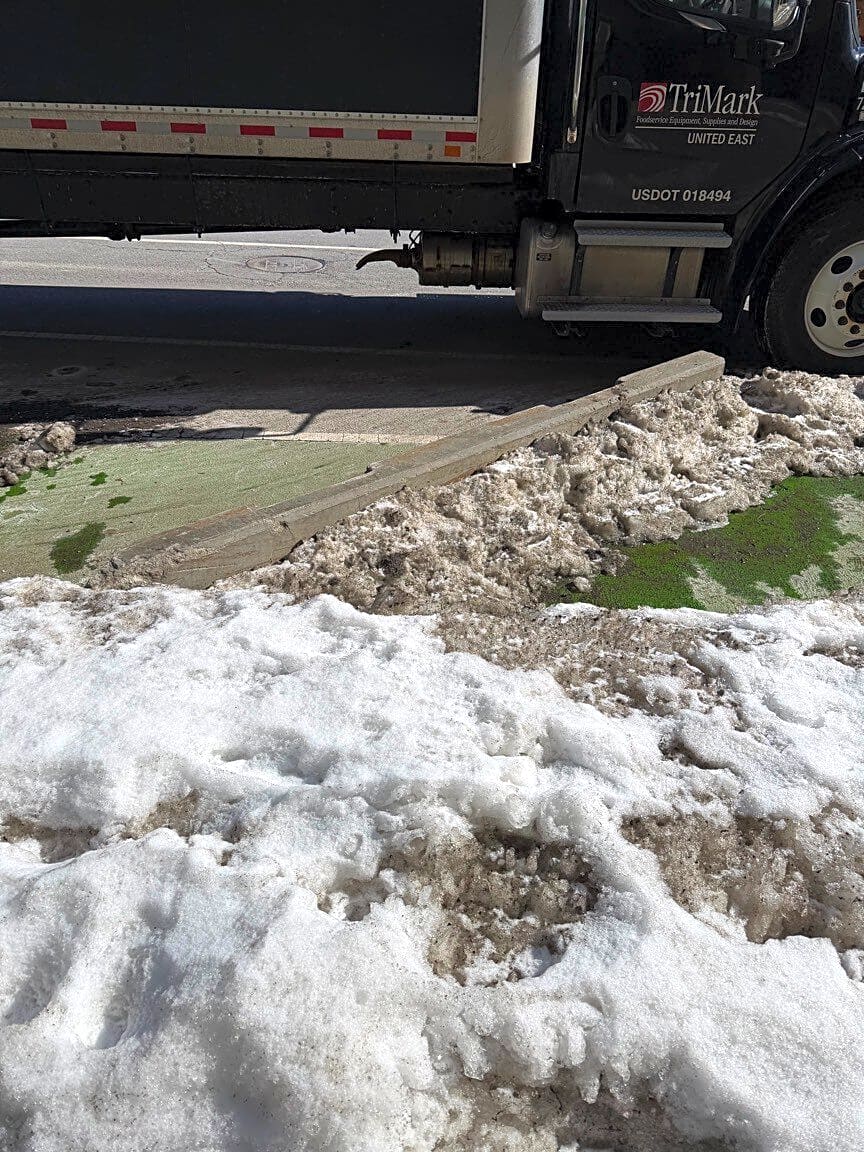 Intersection Of Clearway St And Massachusetts Ave, Boston, MaConcrete block blocking bike lane.