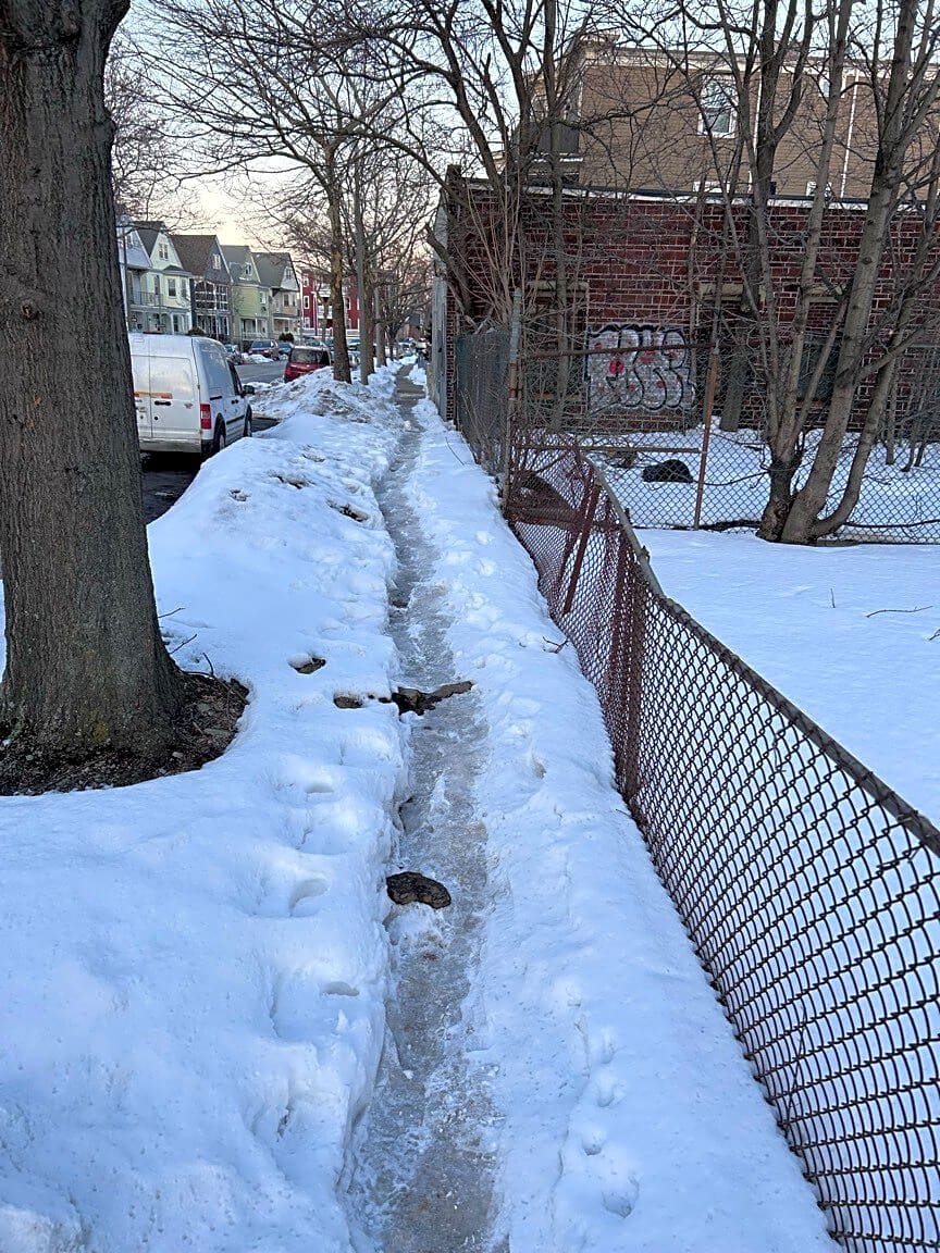 141 Welles Ave, Dorchester, Ma, 02124Sidewalk not shoveled - along MBTA corridor - dangerous! Treacherous footing or walk into street