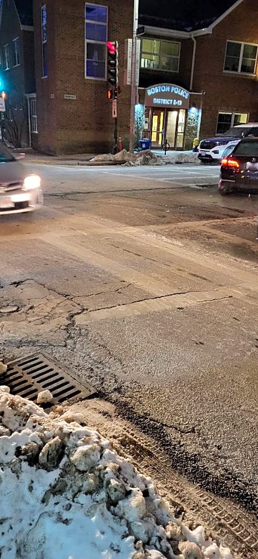 Intersection Of Albany St And Frontage Rd, Roxbury, MaSidewalk not shoveled