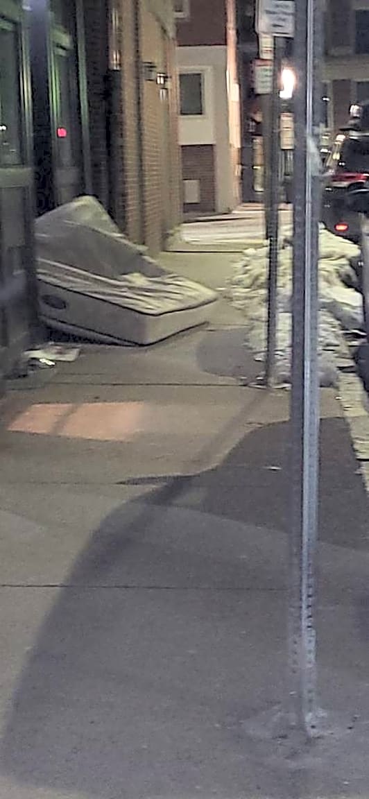 27 Thacher St, Boston, Ma, 02113Mattress blocking an actual doorway- can someone remove this! It’s blocking someone’s door- and a sidewalk! Been here since Saturday. This is serious and a safety issue blocking a door!